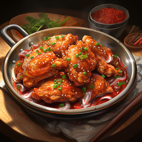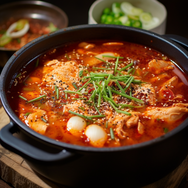 - 닭볶음탕은 닭고기를 뜨거운 오일에 볶아내는 요리로, 매콤하고 짭짤한 맛이 특징입니다.